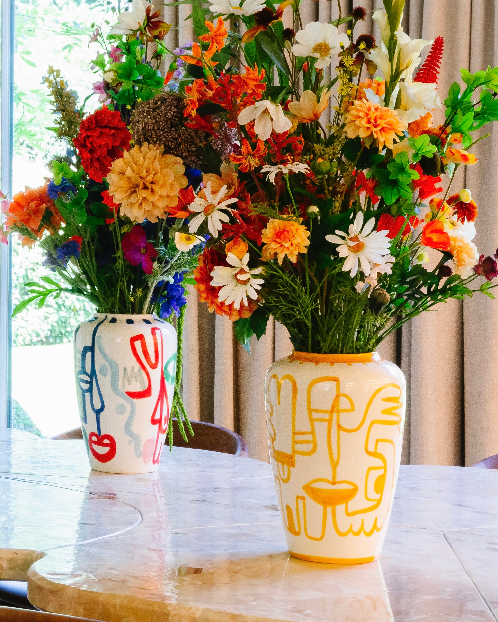 Elk exemplaar is met de hand vervaardigd in Portugal, waardoor kleine variaties het stuk een eigen persoonlijkheid geven. De vaas komt zowel tot zijn recht met bloemen als op zichzelf — een subtiel statement waarin creativiteit, vakmanschap en kleurvolle elegantie moeiteloos samenkomen.