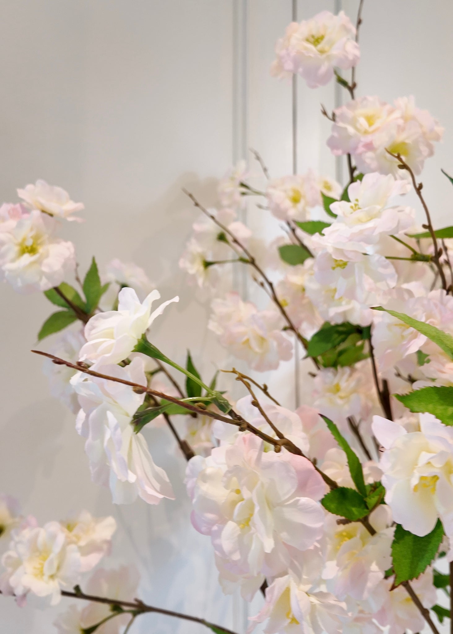 De zijden bloesems zijn zorgvuldig afgewerkt en behouden hun elegante uitstraling het hele jaar door.